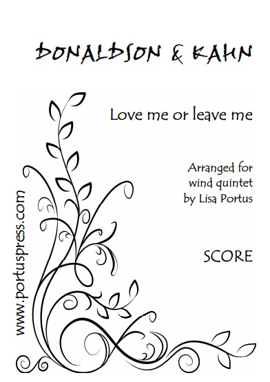 Love Me or Leave Me is a popular song written by Walter Donaldson with lyrics by Gus Kahn. The song was introduced in the Broadway musical comedy Whoopee! which opened on Broadway in December 1928. Whoopee! also included another major hit for Donaldson and Kahn – Makin’ Whoopee! (also arranged for wind quintet/quartet).